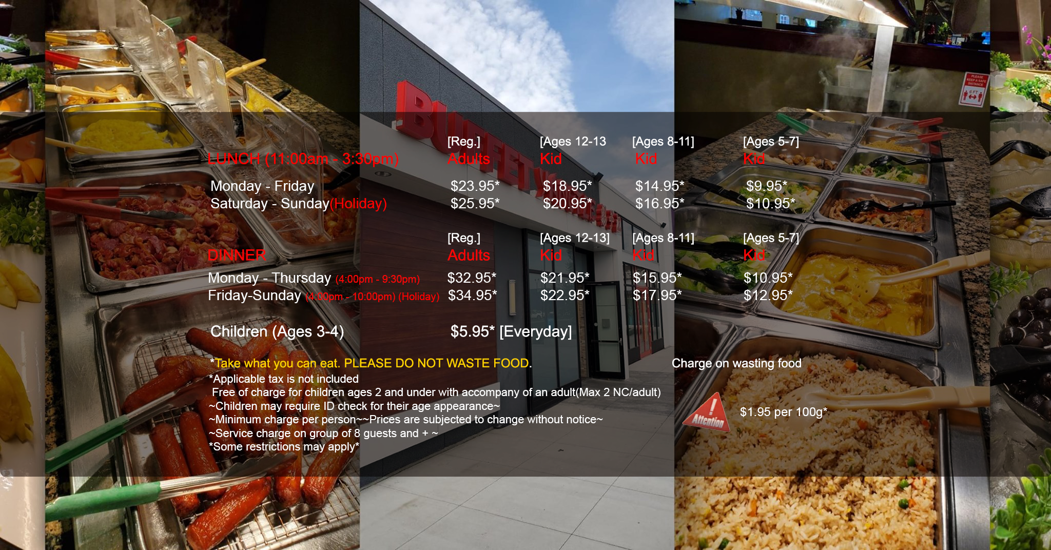 Enjoy all‑you‑can‑eat variety with pricing that fits your schedule and party.